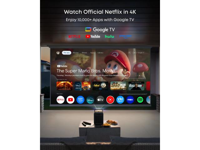 Otkrijte vrhunski projektor s 4K jasnoćom, ultra svjetlinom i AI prilagodbom. Uživajte u Netflixu u 4K bez ikakvih dodatnih uređaja!