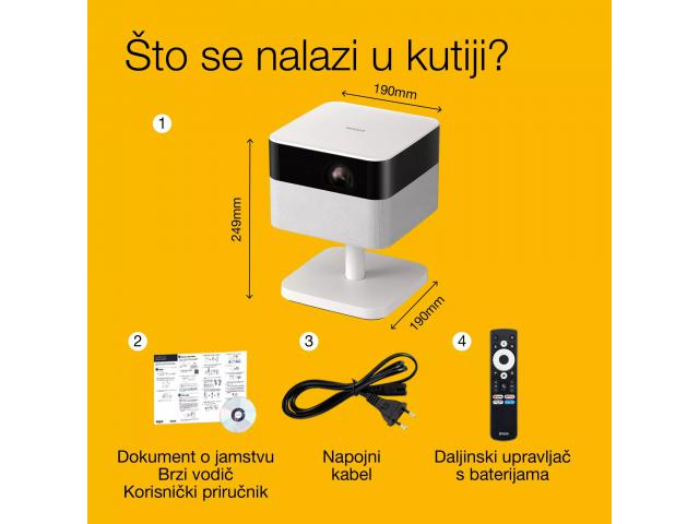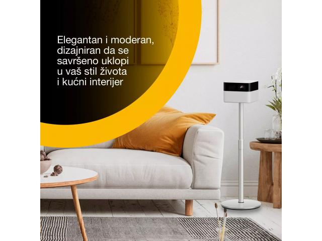 - Fleksibilna projekcija s inteligentnim trenutnim postavljanjem Osmišljen za besprijekornu upotrebu u zatvorenom i na otvorenom uz automatsko postavljanje za laku prenosivost. Podesivi stalak s rotacijom od 180° i nagibom od 90° omogućuje projekciju na bilo koju površinu, kod kuće ili u pokretu.