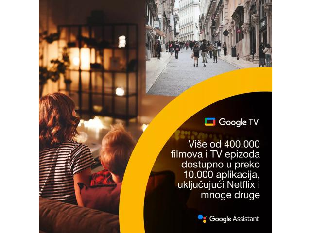 - Google TV i Google Assistant Jednostavan pristup više od 400.000 filmova i serija iz svih vaših omiljenih aplikacija i pretplata, kao što je Netflix i još mnogo toga – sve na jednom mjestu*.