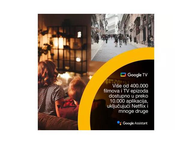 - Google TV i Google Assistant Jednostavan pristup više od 400.000 filmova i serija iz svih vaših omiljenih aplikacija i pretplata, kao što je Netflix i još mnogo toga – sve na jednom mjestu*.