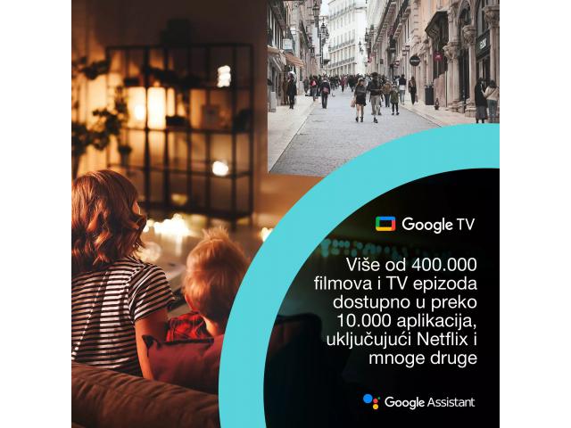 - Google TV i Google Assistant Jednostavan pristup više od 400.000 filmova i serija iz svih vaših omiljenih aplikacija i pretplata, kao što je Netflix i još mnogo toga – sve na jednom mjestu*.