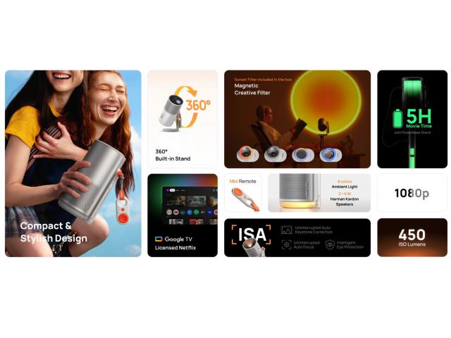 - Google TV s licenciranim Netflixom i 450 ISO lumena: Gledajte najnovije hitove i serije koje morate pogledati u zapanjujućoj 1080P rezoluciji s 450 ISO lumena, sve iz MoGo 4. Pristupite više od 10 000 aplikacija i više od 800 besplatnih kanala. Nije potrebno postavljanje - samo ga uključite i uživajte!