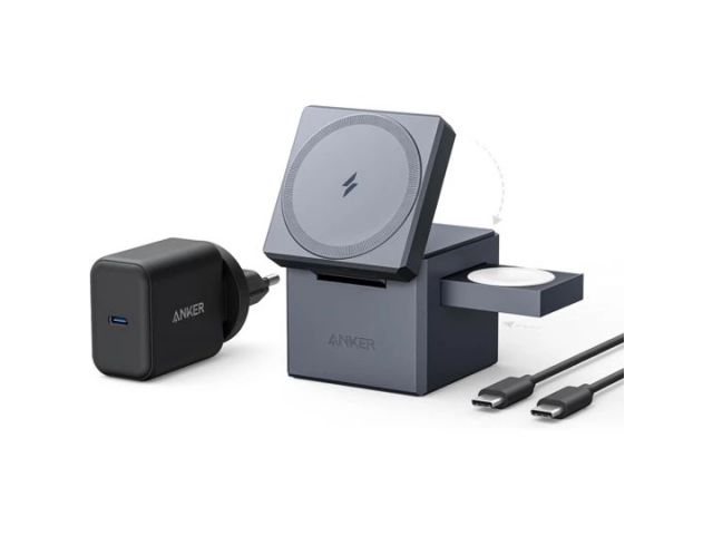 Jedno rješenje za bežično punjenje vašeg iPhonea, Apple Watcha i AirPodsa s Anker 3-in-1 Cube MagSafe punjačem u crnoj boji. Kompaktan, sklopiv i uvijek spreman za put.