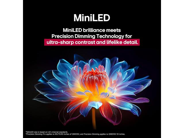 Najnovija i jedinstvena tehnologija široke palete boja tvrtke LG zamjenjuje Quantum dot i omogućuje poboljšanu brzinu prikazivanja boja. AI postupno povećanje i profesionalno dinamičko mapiranje nijansi boja analiziraju svaki element kadra i poboljšavaju rezoluciju, osvjetljenje, dubinu i jasnoću dok MiniLED jasnoća susreće Advanced Local Dimming za zapanjujuću dubinu i detalje. AI algoritam procesora može prepoznati sadržaj po žanru. Na temelju informacija omogućuje najoptimalnije postavke kvalitete slike za bolju dubinu i pojedinosti.
