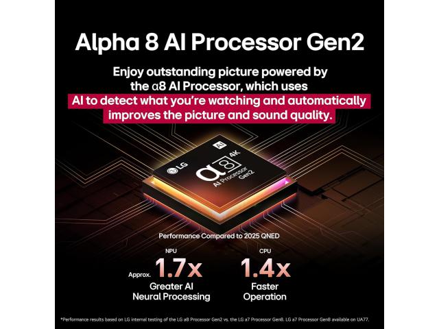 - AI Super Upscaling 4K postupno povećavanje slike i surround zvuk iz procesora alpha 8 AI Processor Gen2