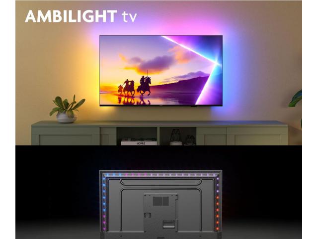 Pripremite se na briljantne boje koje pruža 4K QLED. Prožimajuće osvjetljenje Ambilight. Dolby Atmos s kinematografskim 3D zvukom. Ovaj televizor s platformom Titan OS prikazuje vaše omiljene sadržaje, poboljšava svaki trenutak i pruža bolji doživljaj gledanja. S integriranim LED svjetlima koja reagiraju na svaku scenu, Ambilight vas prožima krugom živopisne svjetlosti. Filmovi, sportski događaji, glazbeni spotovi i igre šire se izvan zaslona i uranjaju vas još dublje u trenutak. Jednom kad ga iskusite, više nikada nećete htjeti drugi televizor.