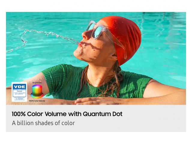 Real Quantum Dot tehnologija donosi Vam našu najbolju sliku dosad. Uz postotni volumen boje, Quantum Dot tehnologija svjetlost pretvara u boje koje oduzimaju dah i izgledaju stvarno pri bilo kojoj razini svjetline. Živahne i precizne boje pojačane Samsung kvantnim točkastim slojem bez kadmija koji pruža 100% volumena boja. AI prepoznaje svaku scenu i u skladu s tim poboljšava prikaz boja, pružajući živopisniji i dinamičniji doživljaj gledanja. Upoznajte novu razinu HDR-a koja dinamički analizira svaku scenu kako bi pružila bolju svjetlinu i kontrast. Quantum HDR+ stvara impresivnije boje i bogatije detalje, omogućujući vam da uživate u boljem kino iskustvu. HDR 10+ sada i u streamingu na OTT uslugama. Oznaka „PANTONE Validated” provjeren je simbol vjernosti kojom stručnjaci iz branše potvrđuju točne prikaze 2.140 PANTONE boja i novododanih 110 nijansi boje kože.