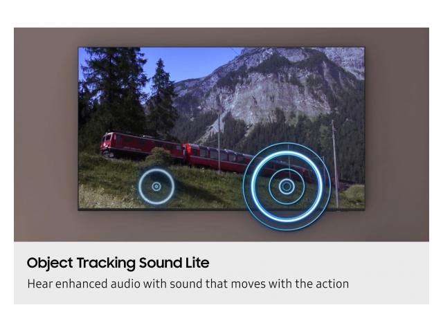 Adaptive Sound tehnologija prilagođivanja zvuka odlikuje se zvučno-prostornom inteligencijom koja optimizira zvuk na temelju analize scena u stvarnom vremenu prema vrsti sadržaja. Okružite se prekrasno usklađenim zvukom. Samsung tehnologija usklađuje zvuk TV-a i soundbar zvučnika radi istodobne reprodukcije bez utišavanja zvučnika navedenih uređaja. 3D sveobuhvatni zvuk koji nastaje zahvaljujući virtualnom gornjem audiokanalu pruža prožimajući doživljaj zvuka.