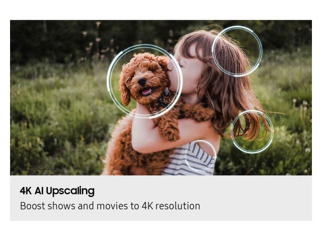 AI način rada omogućuje brz pristup izborniku, na kojem možete prilagoditi sliku i zvuk te inteligentno optimizirati doživljaj gledanja svojeg TV-a prema okružju i sadržaju koji gledate. AI procesor Vašeg TV-a prepoznaje različite zvukove, poput i pozadinske glazbe, i optimizira ih prema njihovoj vrsti i akustici Vaše prostorije prije nego što ih najzad poboljša tehnologijom remasteriranja zvuka. Neka Vam TV bude pomoćnik pri čuvanju kućnih ljubimaca dok ste vani. Vaš TV preko svojeg mikrofona može prepoznati zvukove poput lajanja, a zatim automatski uključiti omiljeni sadržaj Vašeg ljubimca kako bi ga umirio. S ažuriranom inteligencijom Bixby na Vašem Samsung AI TV-u savršeno je središte Vašeg AI doma. Može obraditi više naredbi odjedanput i bolje shvaća širi kontekst.