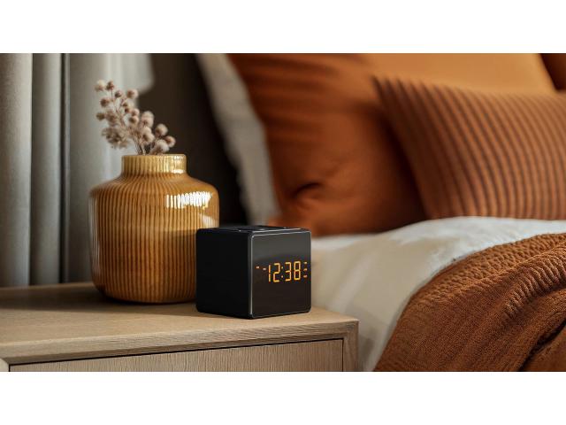 Nježno se budite, lakše zaspite! Uz velik i jasan sat, dva alarma čija se glasnoća nježno povećava, praktični USB-C priključak i podešavanje ljetnog računanja vremena jednim dodirom, ovaj FM radio sa satom omogućit će cijeloj obitelji pravovremeno buđenje tijekom cijele godine. Čitljiv zaslon može se pohvaliti velikim znamenkama sata koje vam omogućuju da lako vidite koliko je sati, a svjetlinu možete podesiti kako bi odgovarala prostoriji ili prigušiti zaslon noću. Kako biste podesili vrijeme za ljetno računanje vremena, jednostavno pritisnite namjensku tipku DST na vrhu sata. Praktični USB-C priključak omogućuje vam uporabu napajanja radija sa satom za punjenje telefona tijekom noći. Ako vam je u jednoj utičnici pokraj kreveta ukopčana svjetiljka, a u drugoj radio sa satom, nećete morati tražiti dodatne utičnice! Na vrhu radija sa satom nalaze se bitne kontrole. Nećete morati prolaziti kroz izbornike – jednostavno pritisnite relevantne tipke kako biste postavili ili odgodili alarme, podesili svjetlinu zaslona, podesili radio, promijenili glasnoću ili prikazali ljetno računanje vremena. Možete postaviti dva alarma – savršeno ako ćete vjerojatno odgoditi prvi alarm i odlično za djecu ili partnere koji dijele sobu, ali se bude u različito vrijeme buđenja. Oba alarma mogu se podesiti na zvuk budilice ili radio, a glasnoća je u početku smanjena i postepeno se povećava. Nema više šokantnog buđenja! Klasična glazba, jazz, najnoviji hitovi ili vijesti? Bez obzira na to što volite slušati, digitalni radijski prijemnik pruža kristalno čist prijem. Možete i podesiti do 20 memoriranih stanica kako biste izravno pristupali omiljenim stanicama. Funkcija automatskog isključivanja omogućuje vam da utonete u san dok se radio reproducira u pozadini. Nakon što istekne prethodno postavljeno vrijeme radio se automatski isključuje. Jednostavno pritisnite tipku za funkciju automatskog isključivanja na vrhu radija sa satom kako biste postavili vrijeme za automatsko isključivanje (ili isključili funkciju). Ova budilica s radijem ima rezervnu bateriju koja omogućuje da sat i alarmi nastave raditi u slučaju prekida napajanja. Umetnite 2 AAA baterije (nisu priložene) u odjeljak za baterije: ako se napajanje prekine tijekom noći, nećete morati ponovo postavljati sat.