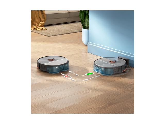 - Linijski laser + prepoznavanje prepreka – zaobilazi cipele, kabele, igračke (od 2,5 cm visine) i čisti oko njih, radi i u mraku