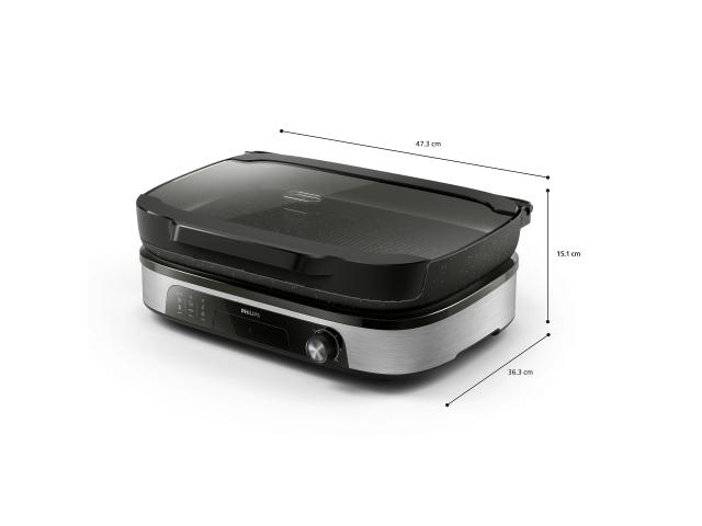 Philips HD6212/90 je savršen izbor za sve koji žele pravi okus roštilja s dimom i začinima tijekom cijele godine, bez odlaska van i bez nereda u kuhinji. Idealno za meso, ribu, povrće, sendviče i doručak na stolu.
