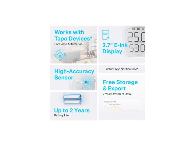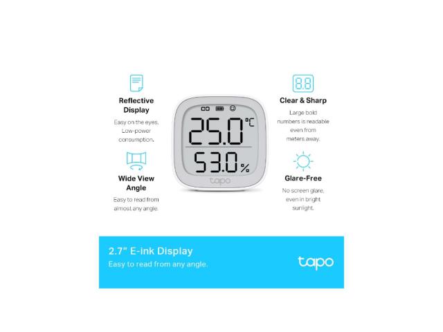 - E-ink zaslon od 2,7 inča - prikazuje temperaturu i vlažnost, razinu udobnosti s izrazima lica, stanje baterije i signal.