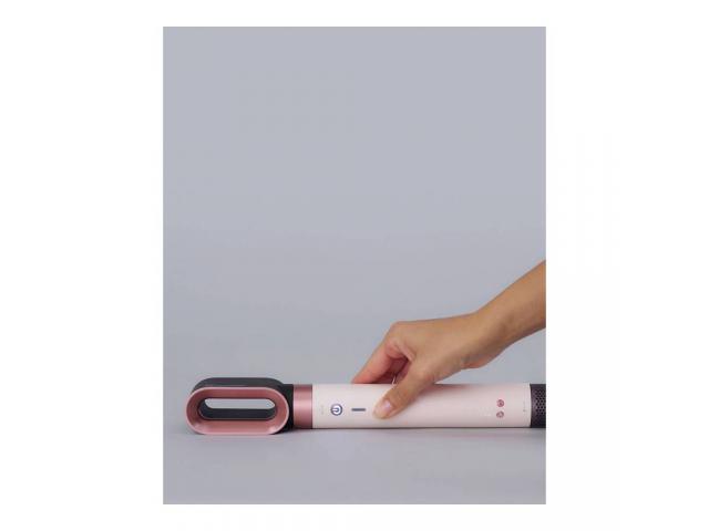 — u elegantnoj kombinaciji Ceramic Pink / Rose Gold — predstavlja najnoviju generaciju Dysonovih multi-stilizatora s Coanda efektom. Ovaj uređaj kombinira brzo sušenje, uvijanje, uvijanje valova, izravnavanje, zaglađivanje i volumen u jednom uređaju — sve uz pažnju na zaštitu kose od previsoke topline. Motor Dyson Hyperdymium™ vrti se do 110.000 o/min i stvara dovoljan tlak za stvaranje Coanda efekta i dvostruko snažniji protok zraka. U odnosu na prethodne modele, Co-anda2x donosi pojačani protok zraka (2× zračnog tlaka) i inteligentne nastavke koji automatski prilagođavaju toplinu i protok zraka temeljem izabranog nastavka. CO-anda2x dizajniran je da bude lakši i manji, za bolju upravljivost i jednostavnije oblikovanje. Dvostruka snaga zraka (2× air pressure) – omogućuje snažniji zračni tok u odnosu na Airwrap i.d., čime postiže brže sušenje i bolji učinak oblikovanja. Inteligentni nastavci – uređaj automatski prilagođava optimalne postavke topline i protoka zraka za svaki nastavak. AirSmooth2x™ – novi nastavak za zaglađivanje (sličan mini izravnaču) koji koristi snažan protok zraka bez ploča za ravnanje (bez direktne ekstremne topline). Kompatibilnost s aplikacijom MyDyson™ – omogućuje bežično praćenje, prikaz trenutačnih postavki, pohranu omiljenih profila, vođene tutorijale i obavijesti o održavanju. Zaštita topline – Dyson kontrola topline i inteligentni sistemi osiguravaju da temperatura ne naraste previše i da ne dođe do oštećenja kose uslijed previsoke topline. Snaga: 1700W. Postavke: 4 topline, 3 brzine. Dužina kabela 2.0 m. Nastavci: 1. Nastavak za brzo sušenje 2x – kontrolira protok zraka veće brzine za brže sušenje. 2. AirSmooth2x – Upotrebljava protok zraka velike brzine kako bi pružio napetost potrebnu za oblikovanje ravnijih frizura – bez vrućih ploča 3. Okrugla Volumizirajuća četka 2x – stvara voluminozne frizure s manje neposlušnih vlasi. (mekana podloga) 4. Četka protiv zapetljavanja 2x –daje glađu završnu i bolje poravnatu frizuru 5. Cijev za kovrče Co-anda2x od 30mm – stvorite voluminozne kovrče i valove u oba smjera s pomoću jedne cijevi, 6. Cijev za kovrče Co-anda2x od 40mm – stvorite opuštene kovrče i valove u oba smjera s pomoću jedne cijevi.