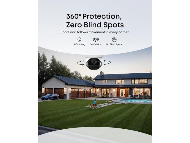 - 360° zaštita bez mrtvih kutova, uživajte u sveobuhvatnoj pokrivenosti sa širokim kutom gledanja, smanjujući mrtve kutove i omogućujući vam nadzor nad vašom verandom, dvorištem ili čak prilazom.