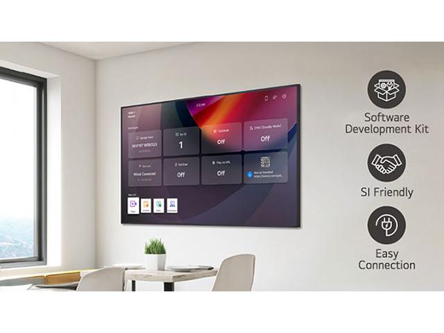 Interna memorija 16 GB, Wi-Fi i Bluetooth (ugrađeni), senzor temperature, senzor automatske svjetline (ugrađen samo za Europu, prodaje se zasebno u ostalim regijama), senzor ubrzanja (žiroskop), lokalno upravljanje tipkama, webOS 8.0, lokalno raspoređivanje sadržaja, upravitelj grupa, USB Plug & Play, prebacivanje u slučaju kvara, slika logotipa pri pokretanju, slika bez signala, RS-232C sinkronizacija, sinkronizacija lokalne mreže, PIP, PBP (4), dijeljenje zaslona, ??oznaka videozapisa (4), reprodukcija putem URL-a, rotacija zaslona, ??rotacija vanjskog ulaza, reprodukcija bez prekida, postavljanje načina rada pločica (maks. 15 × 15), kloniranje podataka o postavkama, SNMP, ISM metoda, automatsko postavljanje ID-a, slanje statusa poštom, upravitelj upravljanja, Cisco certifikat (TBD), Crestron Connected, pametna ušteda energije, PM način rada, buđenje na LAN-u, spreman za mrežu, beacon, HDMI-CEC, postavke SI poslužitelja, webRTC, Pro:Idiom
