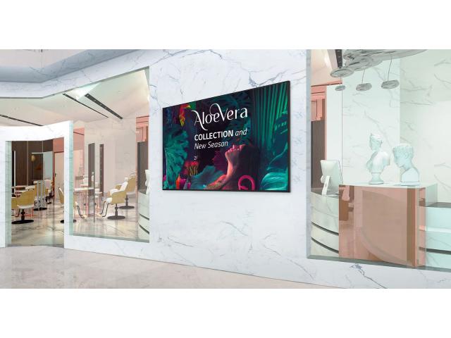 Unatoč velikom zaslonu, UH5N-M se može pohvaliti tankom dubinom, što je prednost za uređenje interijera. Kako bi se izbjegli vizualni problemi prilikom podešavanja u portretni način rada, okvir održava ujednačenu debljinu na sve četiri strane, pružajući ravnomjernu simetriju na vrhu, dnu, lijevo i desno. Stoga je to model prikladan za različite opcije stiliziranja. Veliki zaslon učinkovito privlači pažnju ljudi. Posebno model od 75 inča podržava 60 Hz, što omogućuje nesmetan rad sa sadržajem. Vanjski sloj proizvoda dizajniran je da učinkovito sprječava širenje plamena, što proizvod čini izvrsnim za ugradnju u javnim prostorima.
