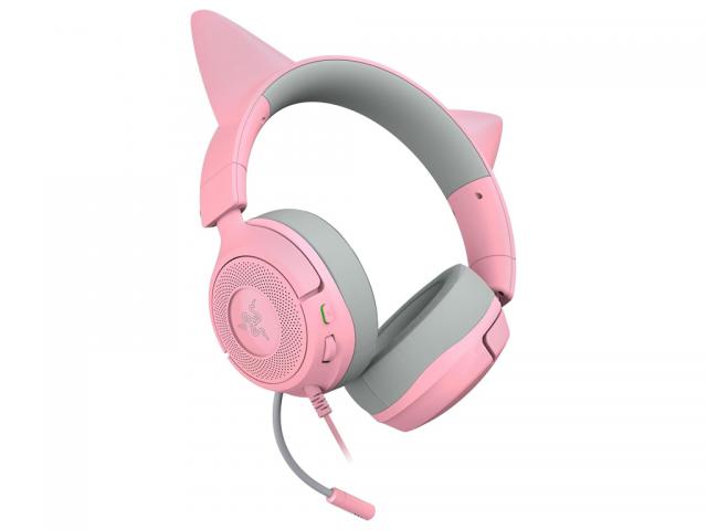 Razer Kraken Kitty V3 X su gaming slušalice s Meow faktorom. Opremljene su izvrsnim Razer TriForce drajverima i Razer Hyperclear mikrofonom. Traka za glavu i jastučići za uši izrađeni od memorijske pjene i hibridne tkanine pružaju udobnost, a tipke na slušalicama omogućuju praktično upravljanje glasnoćom i mikrofonom. Kraken V3 X se također može pohvaliti 7.1 surround zvukom, s kojim ćete čuti sve zvukove oko sebe u igri. Povezivanje s 3,5 mm kabelom.