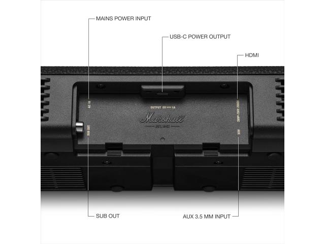 Žično povezivanje: HDMI eARC, AUX IN 3.5 mm, RCA Mono (Sub Out), USB-C