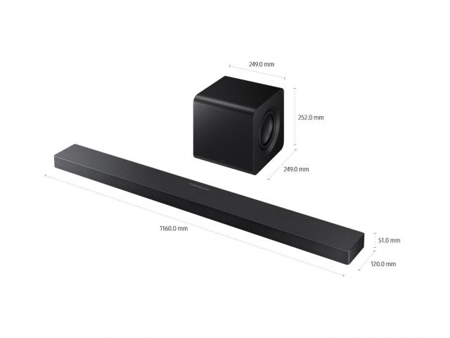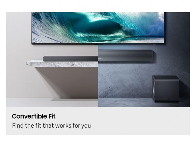 Zvučnici su dizajnirani da funkcioniraju kao kanali koji usmjeravaju zvuk i naprijed i prema gore, automatski prilagođavajući smjer izlaza na temelju položaja zvučnika soundbara. Dok woofer osigurava bogat bas s manjim dubokotoncem. Diskretno se uklapa u Vaš dom bez ugrožavanja performansi.