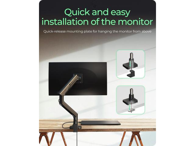 S integriranim mehanizmom za zatezanje opruge, stalak omogućuje glatko i precizno kretanje, omogućujući vam jednostavno podešavanje visine i kuta prema vašim potrebama. Zaslon možete podići, spustiti ili premjestiti uz minimalan napor, što olakšava stvaranje najudobnijeg i fokusiranog radnog prostora.