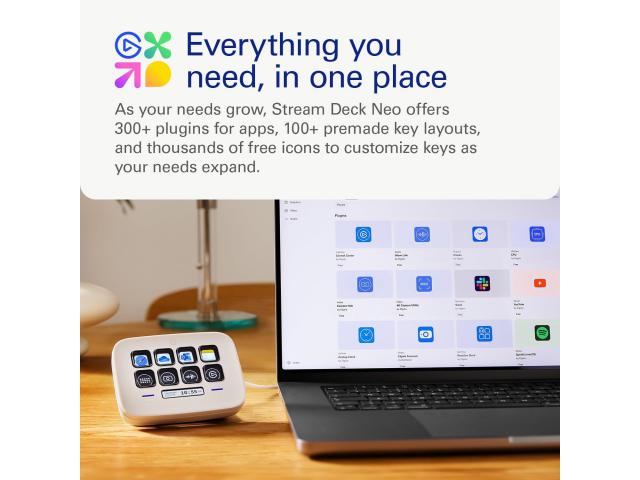 Prilagođavanje tipki je brzo i jednostavno. Jednostavno povucite i ispustite radnje na bilo kojem Windows ili Mac računalu pomoću moćnog softvera Stream Deck. Čak je unaprijed učitan s bitnim radnjama i profilima za početak. Kontroler dolazi sa svime što vam je potrebno za povećanje učinkovitosti, uključujući Stream Deck softver i doživotna ažuriranja firmvera. Trebate pomoć pri postavljanju? Skenirajte QR kôd na svom uređaju kako biste pristupili korisničkom priručniku za Stream Deck Neo.