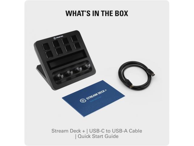 U kutiji: Stream Deck +, USB-C na USB-C kabel, Kratki vodič