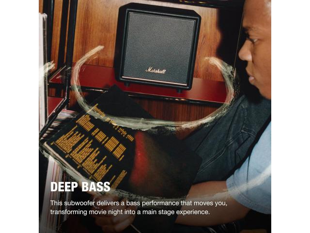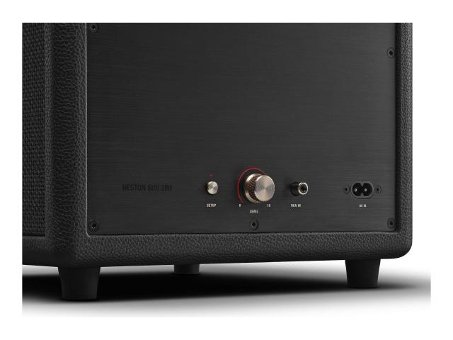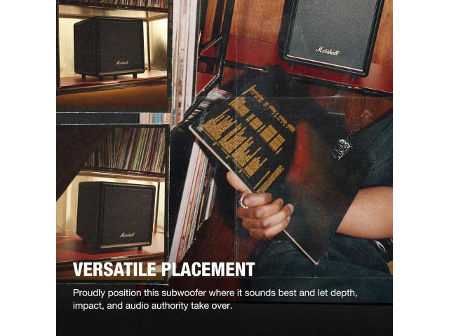 Dizajniran da se besprijekorno uklopi u tvoj dom, subwoofer Heston Sub 200 donosi bas sljedeće razine gdje god stajao, a da ne zauzima puno prostora. Ovaj subwoofer pruža snažne i precizne basove koji filmsku večer pretvaraju u doživljaj glavne pozornice.dmah dođi do zvuka zahvaljujući bežičnom uparivanju s Marshall TV soundbarovima. Uživaj u većem, smjelijem kućnom audio iskustvu zahvaljujući najnovijoj Bluetooth LE Audio bežičnoj tehnologiji. Bez napora upari s Marshall zvučnicima i soundbarovima i fokusiraj se samo na najbolji zvuk. Ponosno postavite ovaj subwoofer tamo gdje najbolje zvuči i prepustite se dubini , udaru i audio autoritetu . Heston Sub 200 nudi drugačiju razinu bas performansi. Gdje god ga pomaknete u prostoriji, i dalje ćete osjetiti podrhtavanje .