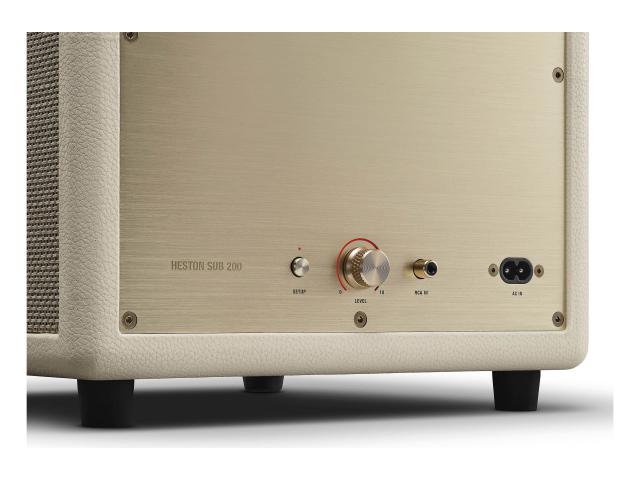 Dizajniran da se besprijekorno uklopi u tvoj dom, subwoofer Heston Sub 200 donosi bas sljedeće razine gdje god stajao, a da ne zauzima puno prostora. Ovaj subwoofer pruža snažne i precizne basove koji filmsku večer pretvaraju u doživljaj glavne pozornice.dmah dođi do zvuka zahvaljujući bežičnom uparivanju s Marshall TV soundbarovima. Uživaj u većem, smjelijem kućnom audio iskustvu zahvaljujući najnovijoj Bluetooth LE Audio bežičnoj tehnologiji. Bez napora upari s Marshall zvučnicima i soundbarovima i fokusiraj se samo na najbolji zvuk. Ponosno postavite ovaj subwoofer tamo gdje najbolje zvuči i prepustite se dubini , udaru i audio autoritetu . Heston Sub 200 nudi drugačiju razinu bas performansi. Gdje god ga pomaknete u prostoriji, i dalje ćete osjetiti podrhtavanje .