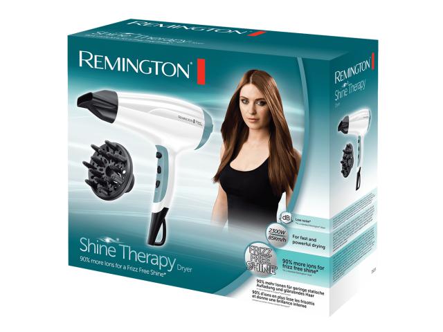 Remington Shine Therapy sušilo za kosu pruža prekrasno sjajnu kosu bez stršećih vlasi kod svakog sušenja, zahvaljujući Remingtonovoj inovativnoj tehnologiji s ionima. Sušilo koristi najsuvremeniji generator iona, koji emitira 90% više iona za postizanje nevjerojatnih rezultata bez stršećih vlasi. Tijekom sušenja i oblikovanja, vrući zrak prolazi kroz rešetku i otpušta više iona od standardnog sušila.