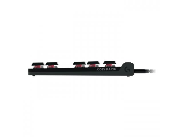 Tipkovnica LOGITECH G515 Rapid TKL je mehanička, žičana, crna s niskim profilom i tenkeyless dizajnom visine samo 22 mm. Kombinira magnetske analogne sklopke za ultra-brzu igru, prilagodljivu aktivaciju tipki od 0,1 mm do 2,5 mm i napredne značajke poput Rapid Triggera, Key Priorityja te Multipoint Actiona, koje zahtijevaju softver Logitech G HUB (dostupan na logitechg.com/ghub).