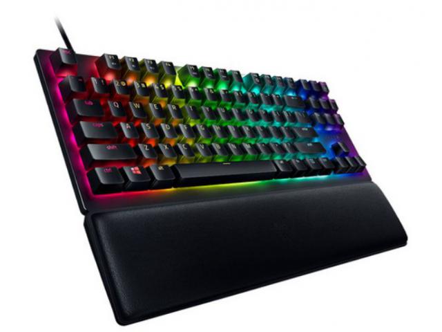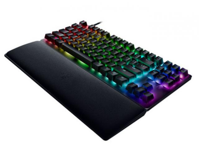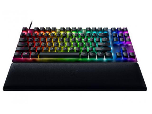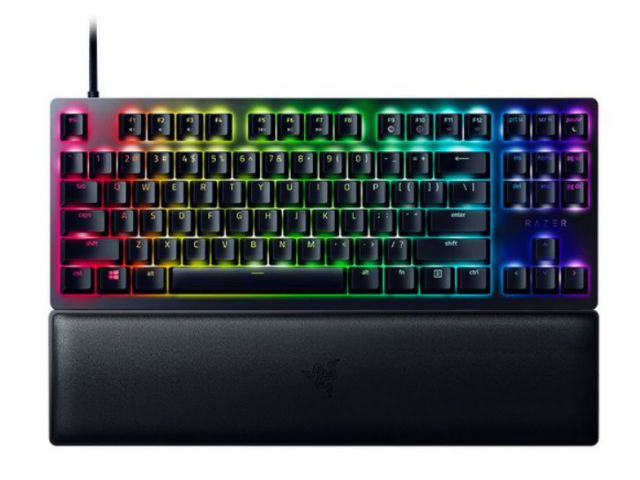 Razer Huntsman V2 Tenkeyless kompaktna je igraća tipkovnica bez numeričkog dijela. Opremljen je optičkim prekidačima Razer ™ Clicky Optical Switch (ljubičasti) koji nude solidan, klikajući i taktilni odziv i životni vijek do 100 milijuna klikova. Hunstsman V2 bez ključa može se pohvaliti Chroma RGB rasvjetom i Razer ™ HyperPolling tehnologijom za učestalost izvještavanja do 8000 Hz. Mekani naslon za zglob pruža udobnost, dok PBT ključevi i aluminijska konstrukcija kućišta pružaju izvrsnu robusnost.