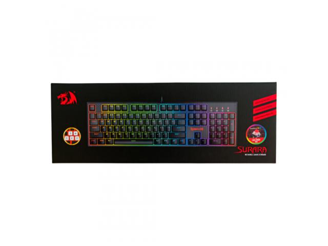 Igraća tipkovnica REDRAGON SURARA K582 RGB opremljena je crvenim OUTEMU prekidačima koji pružaju najbolje iskustvo tipkanja i zadovoljavajuće povratne informacije, pogodne za kontinuirano tipkanje i igranje. Tipkovnica je potpuno prilagodljiva - dodijelite bilo koju tipku ili postavite najekstremnije makroe za igranje bez napora. 6 tematskih pozadinskih osvjetljenja i 12 uzoraka pozadinskog osvjetljenja omogućuju vam tipkanje u mraku. Svjetlinu možete podesiti tipkama FN + gore/dolje. Iznimna izdržljivost tipkovnice osigurava do 50 milijuna pritisaka tipki. Tipkovnica ima čvrstu bazu s dvostruko ubrizganim ABS tipkama, dizajniranim da izdrži svako igranje. Podržava Windows 11, Windows 10, Windows 8, Windows 7, Mac OS X, Windows XP, Windows VISTA itd.
