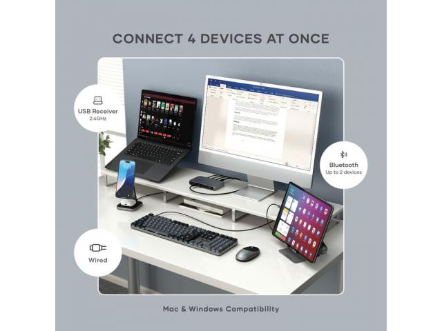 Pametnija povezivost: Povezivanje do četiri uređaja istovremeno putem Bluetooth 5.0, 2.4 GHz USB prijemnika ili USB-C žičane veze, uz jednostavno prebacivanje između uređaja.