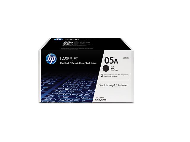 HP CE505D, Tip Toner, Dual Pack, Boja Black, Kapacitet 2300 str., Podržava P2035 ; P2055d/dn; pakiranje se sastoji od 2* CE505A ( kapacitet 2*2300strana)