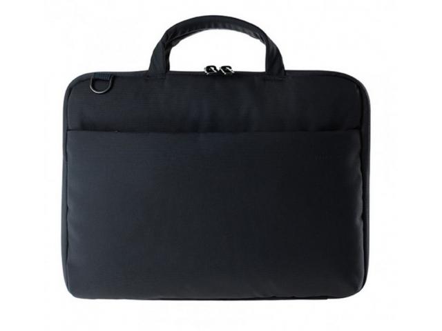 Izuzetno zaštitna tanka torba za prijenosno računalo 14" i MacBook Pro 14" izrađena od tkanine proizvedene od reciklirane plastike s polukrutom stražnjom pločom. Prostrani unutarnji pretinac, dostupan preko otvora na patentni zatvarač na tri strane torbe, omogućuje vam radite sa svojim uređajem tako da pričvrstite rubove s dvije elastične kutne trake. Dolazi s uklonjivim, podstavljenim remenom za rame.