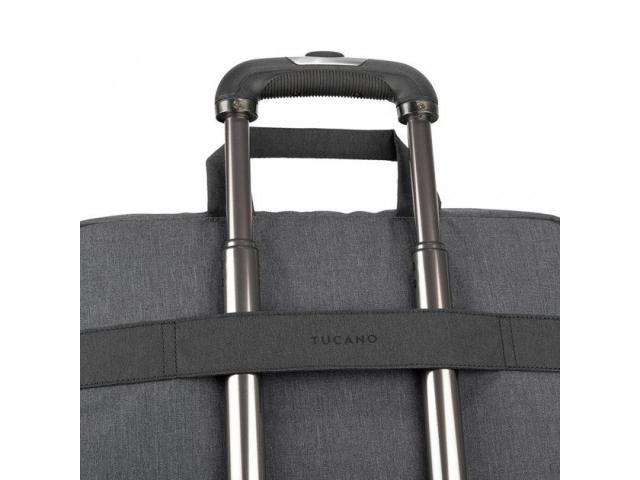 Torba za prijenosna računala od 15,6" i MacBook Pro od 16" izrađena od tkanine mélange izgleda proizvedene od reciklirane plastike. S prostranim središnjim pretincem, torba Hop opremljena je unutarnjim džepom za prijenosna računala i vanjskim prednjim džepom za pribor. Stražnja strana ima praktičan remen za kolica.