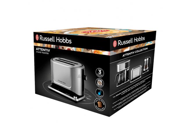 Russell Hobbs Attentiv 2S toster 26210-56 pomaže vam da dobro započnete dan uz ukusan tost. Uređaj ima zaslon osjetljiv na dodir za jednostavno upravljanje, šest postavki i tehnologiju Expert Color Sense koja osigurava da vaš kruh uvijek bude dobar i tostiran s pravom nijansom smeđe boje. Shaker će čak zapamtiti vaše posljednje postavke, tako da možete dobiti isti rezultat pri sljedećem obroku i uštedjeti vrijeme.