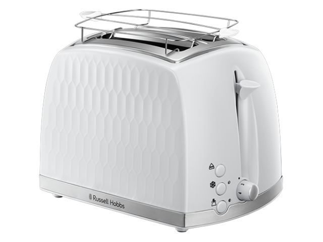 Neka vaša kuhinja bude moderna uz toster s 2 utora Honeycomb 2 Slice u premium bijeloj boji s teksturiranim dizajnom. Omogućujući vam da svoju kuhinju preuredite bez probijanja proračuna, ovaj toster ne samo da unosi dozu stila na vašu radnu površinu, već ima i praktične funkcije. Njegova funkcija visokog podizanja rešetki omogućuje vam da svoj tost podignete do kraja, a rešetka za podgrijavanje peciva je savršena za ona jutra kada žudite za čokoladnim kroasanima.