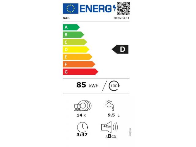 Energetski certifikat Informacijski list proizvodaPerilica posuđa, potpuno ugradbena, širina 60 cm, 8 programa pranja, 6 programa pranja, kapacitet: 14 kompleta, gornja košara namjestiva po visini, mogućnost odgode početka rada do 24 sata, svjetlosni snop na podu kao indikator rada perilice, osvjetljenje unutrašnjosti perilice, dimenzije (VxŠxD): 81,8x59,8x55 cm
