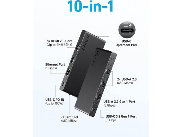 - Što dobivate: Anker 364 USB-C hub (10-u-1, dual 4K HDMI), vodič za dobrodošlicu, naše 24-mjesečno jamstvo bez brige i prijateljsku korisničku podršku.