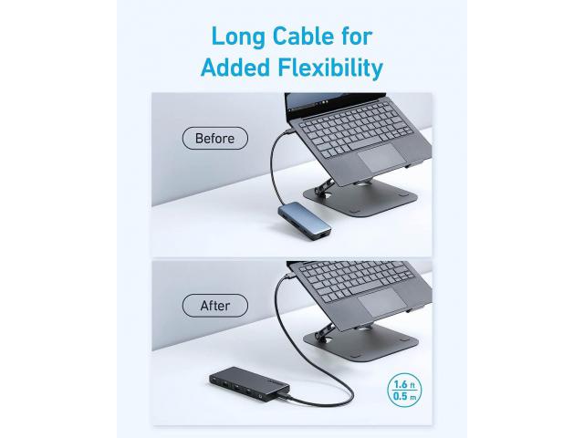 Snažno punjenje putem prijenosnog računala : Podržava punjenje putem prijenosnog računala do 85 W, tako da možete napajati prijenosno računalo dok koristite hub. Napomena: Za punjenje putem prijenosnog računala potreban je punjač (nije uključen). Uključen je kabel od 0,5 m, tako da hub možete jednostavno premještati po stolu kako biste pronašli najbolju lokaciju za sebe.