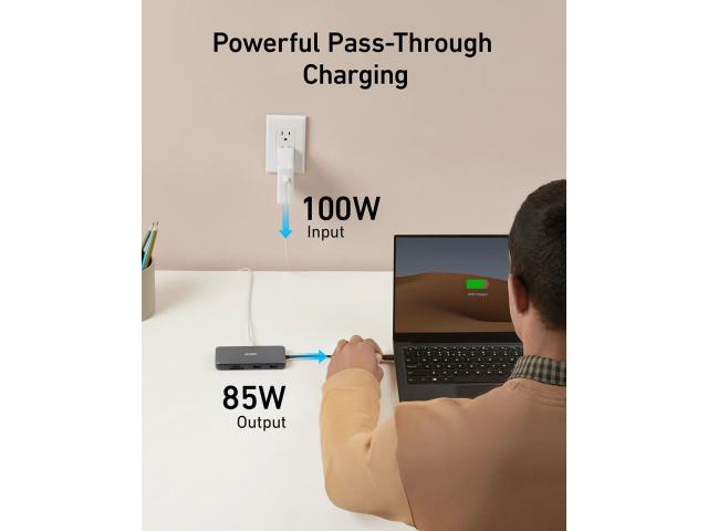 Podržava punjenje putem prijenosa do 100 W (minus 15 W za rad), tako da možete puniti svoj uređaj punom brzinom - sve dok pristupate drugim značajkama huba. (Punjač nije uključen).