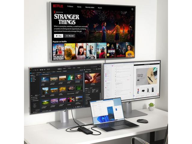 Podrška za tri zaslona: Omogućuje proširenje na tri zaslona putem MST-a za Windows, s rezolucijom do 4K/60Hz (DisplayPort) i 4K/30Hz (HDMI). Na macOS-u podržava jedan prošireni zaslon, dok se ostali zrcale.