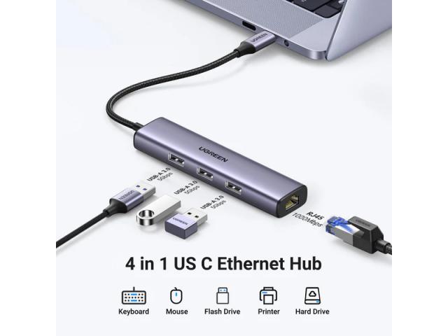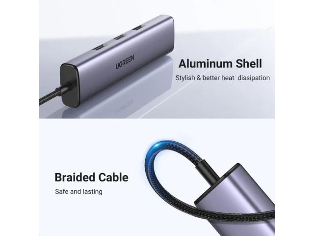 UGREEN USB C to USB 3.0 Hub is designed with 3 high-speed USB 3.0 ports, which can simply help your device to connect more accessories such as a mouse, keyboard, external drive, thumb drive, and more. And the data sync of USB 3.0 can up to 5Gbps, which is 10x faster than USB 2.0.