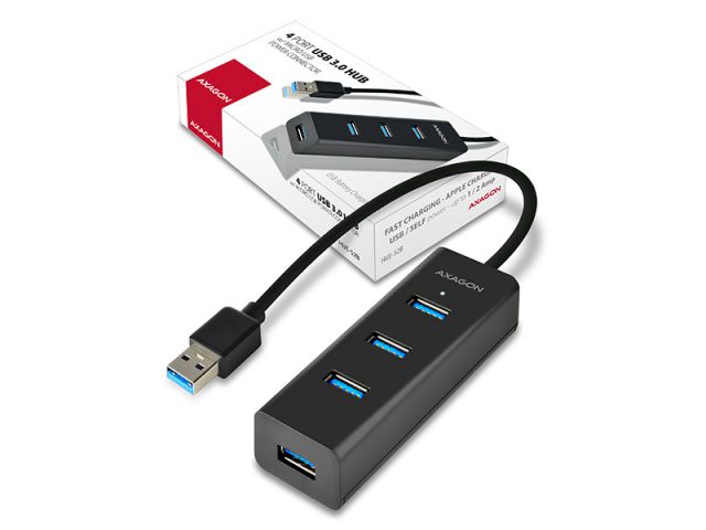 AXAGON HUE-S2B 4x USB3.0 Charging Hub, MicroUSB Charging Connector, 4 x USB 3.0 HUB, mogučnost da bude USB HUB za punjenje (MicroUSB konektor za punjenje, adapter za punjenje nije uključen), podržava Fast Charging do 2A