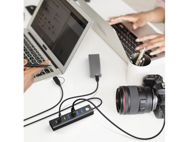 7-portni USB 3.2 Gen 1 hub ima 4 USB-C i 3 USB-A priključka, što vam omogućuje povezivanje gotovo svih USB uređaja. Ova svestranost osigurava da ste pokriveni za razne potrebe povezivanja.