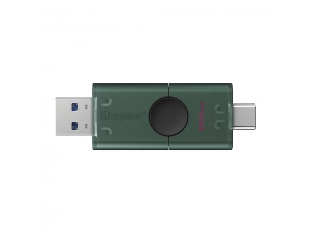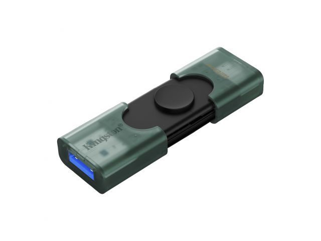 Kingston® DataTraveler® Duo features dual USB connectors that work with both USB Type-A and USB Type-C® ports for maximum compatibility. The innovative dual moving cap design makes the drive stylish and convenient, with no cap to lose. With capacities of up to 128GB, you can easily access and transfer documents, photos, videos, music and more between your USB-A and USB-C devices with the DT Duo.