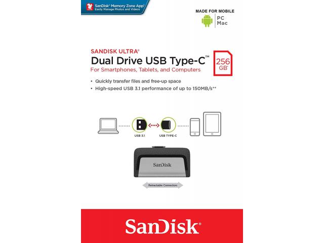 SDDDC2-256G-G46, 256 GB, USB 3.1,USB Type C, Brzina čitanja 160 MB/s, srebrna / crna