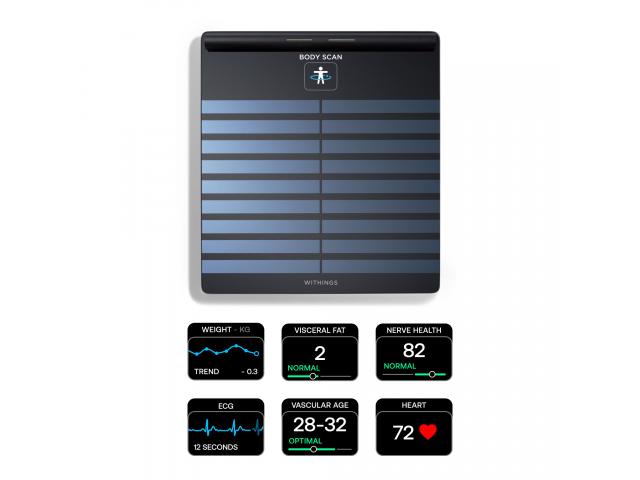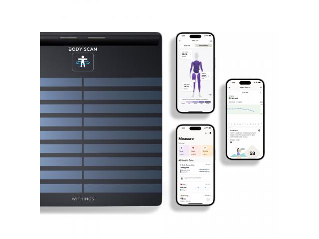 Zahtjevi: Body Scan se može instalirati na pametni telefon ili tablet, putem Withings aplikacije dostupne na iOS-u (iOS 15 i noviji) i Androidu (10.0 i noviji).Ne može se postaviti s računala